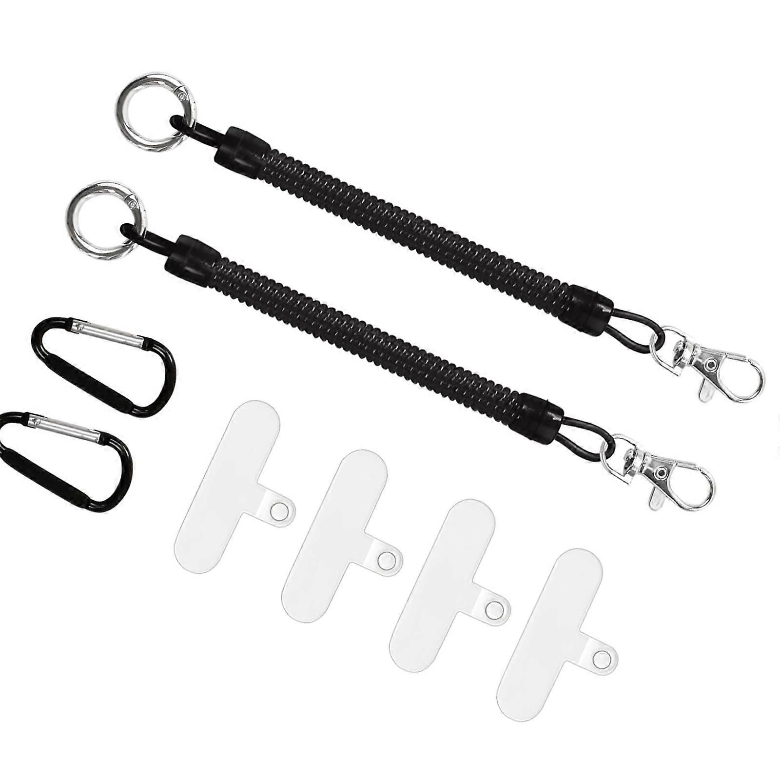 Phone Lanyard Tether with Patches Carabiner Stretchy Strap for Outdoor Hiking Skiing Cycling Retractable Anti Lost Tether Multicolor