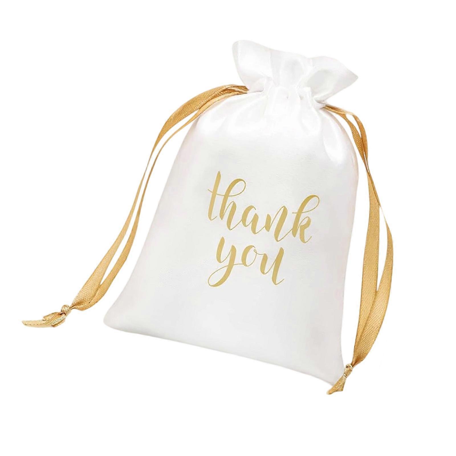 Thank You Print Satined Drawstring Pouch Gift Bag For Wedding Favors Gift Packing Small Pouch for Jewelry Candy Storage White