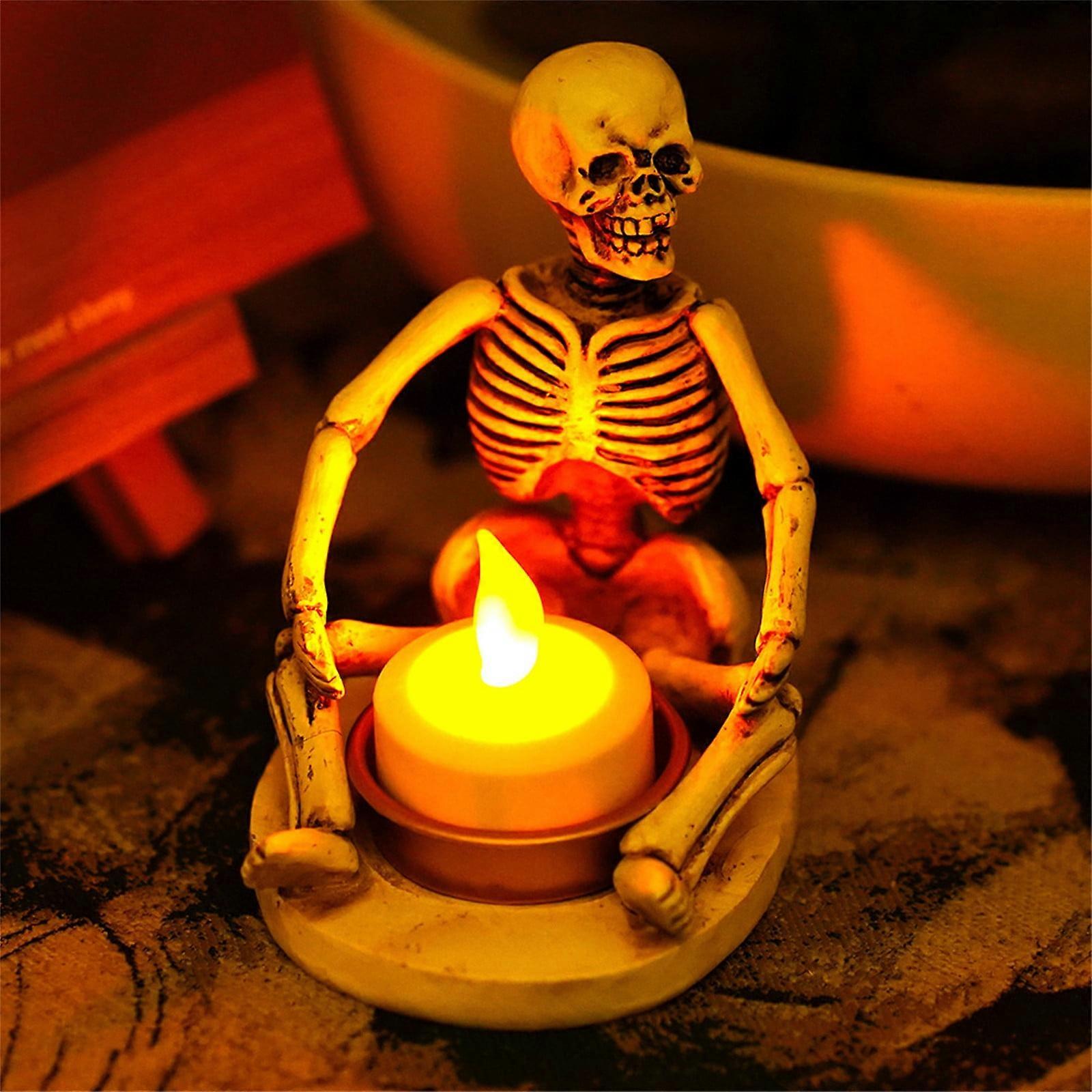 Funny Sitting Witch Candle Holder, Gothic Halloween Decor, Spooky Skeleton Tealight Holder Resin Decor - Compatible with Tealight Candles