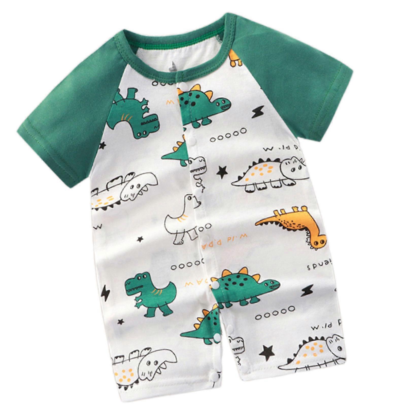 Summer Baby Clothes Short Sleeve Cotton Romper Dinosaur Design Snaps Closure Breathable Playwear For Boys Girls Green dinosaur 90cm