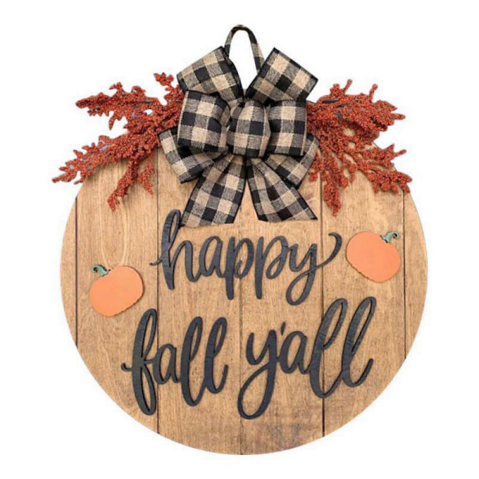 3D Welcome Sign Front Door Decoration Round Wood Wreaths Wall Hanging Decor for Farmhouse Porch Outdoor for Halloween Thanksgiving Day