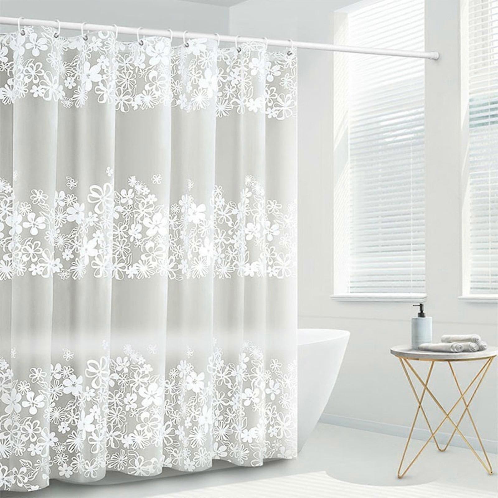 YANHAIGONG Floral Shower Curtain Set, Modern Minimalist White Waterproof Plastic Curtain with Hooks for Bathroom