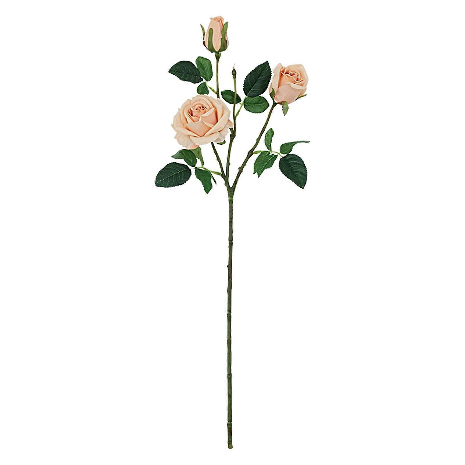 1 Branch Artificial Flower Realistic Looking No Water Need Faux Silk Delicate 3 Heads Simulation Fake Rose Flower Decor Balcony Decor-Light Yellow