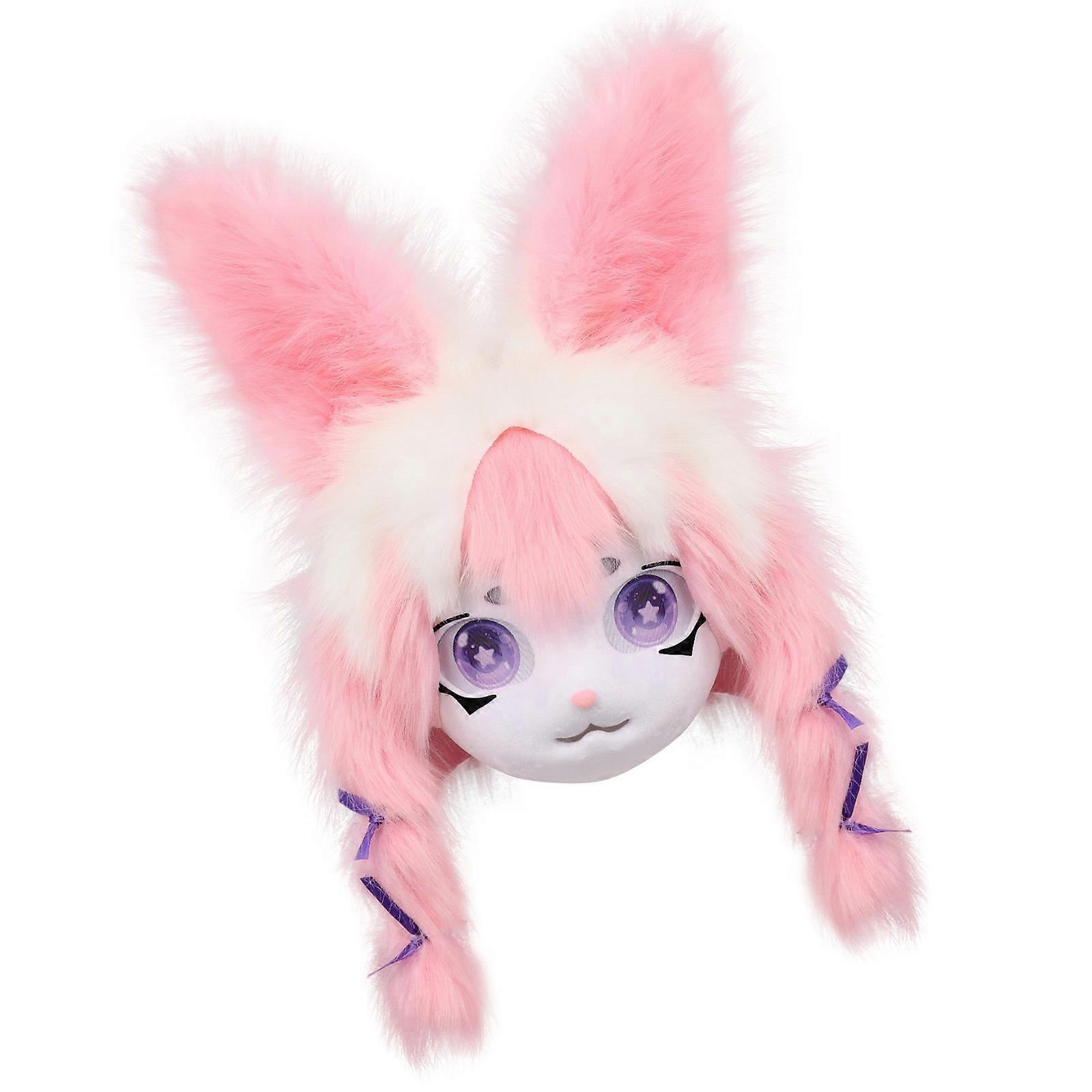 Furry Animal Head Rabbit Fursuit Cut Mask Plush Rabbit Mask Lovely Rabbit Headgear for Halloween Cosplay Party Props Pink white