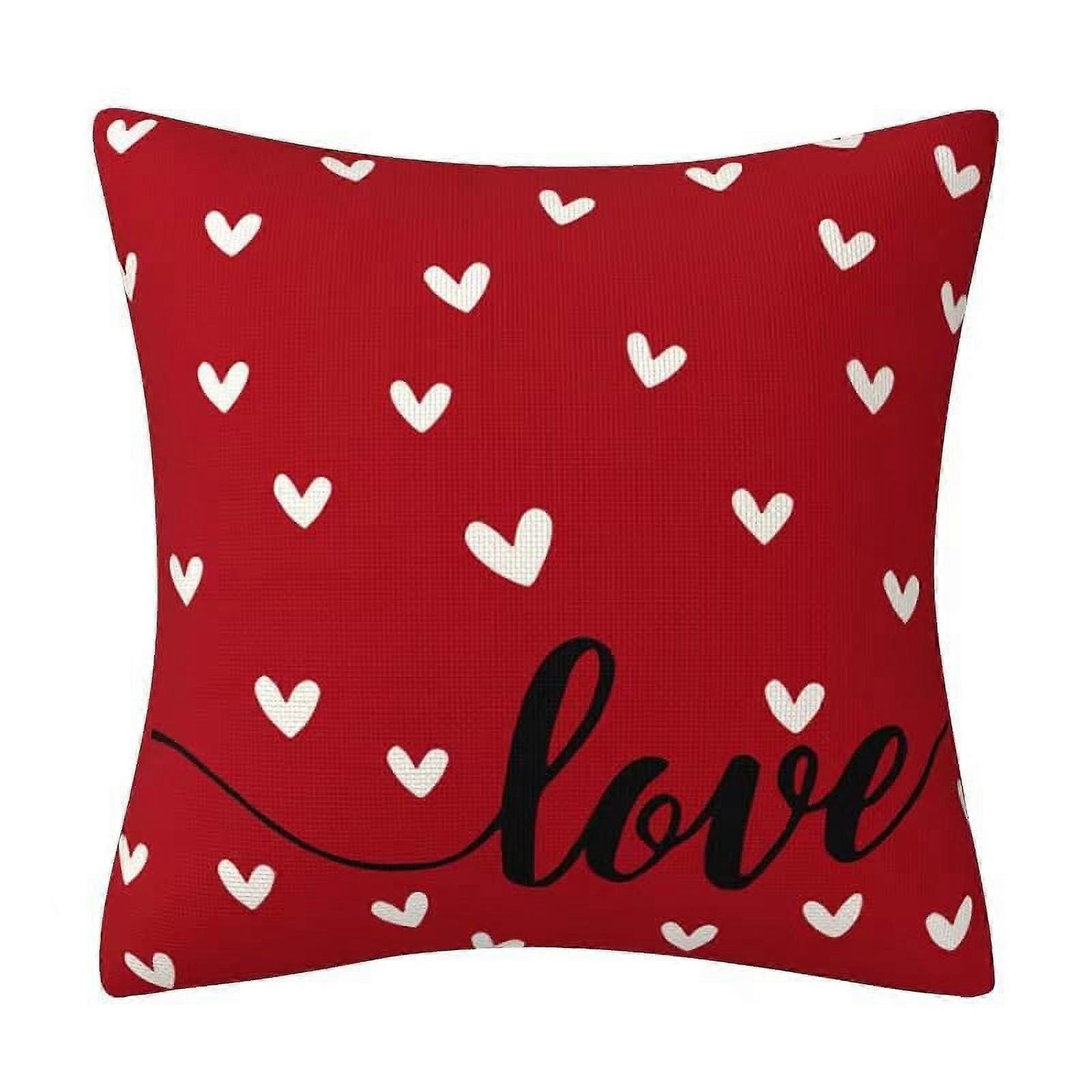 Poaug Pillow Case Clearance 18x18in, Compatible with Valentine's Day Decor, Red Heart Love You More Design, Linen Throw Pillow Covers for Sofa, Home,