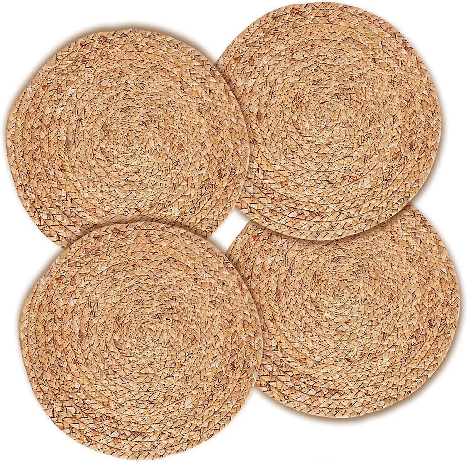 Natural Woven Placemats Can be reused on many different occasions like holidays, Christmas, Thanksgiving, family dinners to poolside, patio dining with your guest add style with these dining table mats woven set, parties, daily dining and more. These add a look that can be Modern to Rustic. Helps provides fun at meal time at home or on the go. Very Well Made and Sturdy Handmade by natural material Water Hyacinth is one of the fastest growing plants known, harvesting them for commercial use serves also as a means of environmental control. Its unique thick weave forms a decorative textured appearance. THICK WEAVE PLACEMAT Thick enough to heat insulation and protect your precious table. It also has a non-slip function to protect your beloved tableware so that you can enjoy your meal. Woven placemats can be used not only for tableware but also for Coasters, Pots, Pans & Teapots in Kitchen .You can easily switch between various uses at will. NATURAL DESIGN Elegant and rustic design, table mats set of 4 will add a sense of returning to nature in your home. A perfect complement to our busy lifestyle. PREMIUM QUALITY: Our wicker placemats are hand-woven by skillful artisans. Compact and rigorous weaving provide durable quality and soft touch. These straw placemats can be used as lovely decorations. MULTI-FUNCTIONAL: Round table placemats can be used as coasters, pots and teapots in the kitchen, and tableware. These can be assembled in multiple layers, saving space and making it easier to carry. 100% NATURAL WATER HYACINTH PLACEMATS: The produced by sustainable materials. These Placemats are eco-friendly to give a safer and eco-conscious feel to your favorite table setting. HEAT RESISTANT: Thick, braided kitchen placemats are ideal for protecting your table from hot pots, bowls and plates. EASY TO CLEAN: Simply wipe the natural placemats with a cloth to remove dirt and then place them in a dry place to dry, and they will look brand new. It saves you time while also bringing you joy.