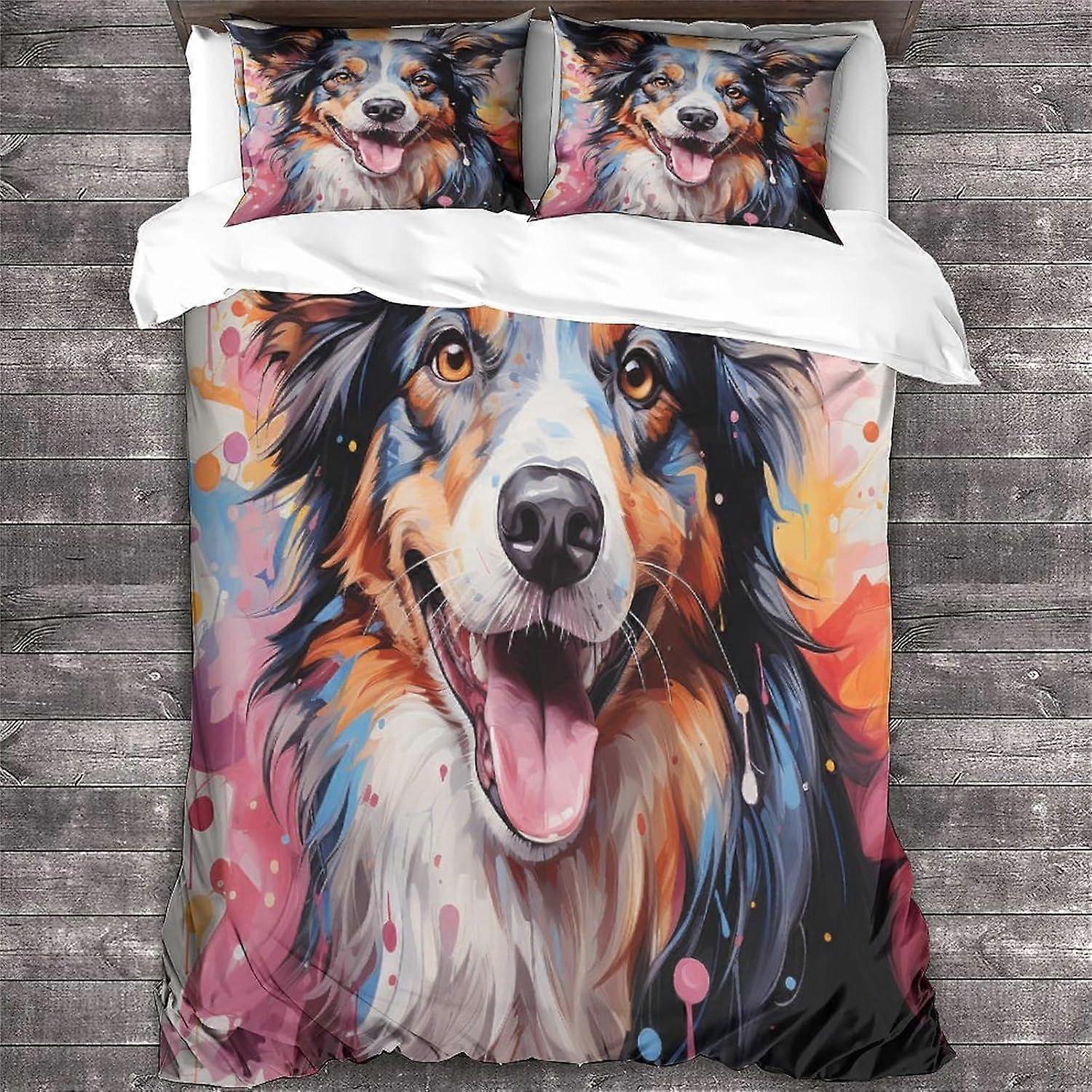 LikeEj 3D Printed Border Collie Bedding Set for Teens Dog Pattern Duvet Cover Set with Pillowcases Animal Microfiber Quilt Cover with Zipper Closure D