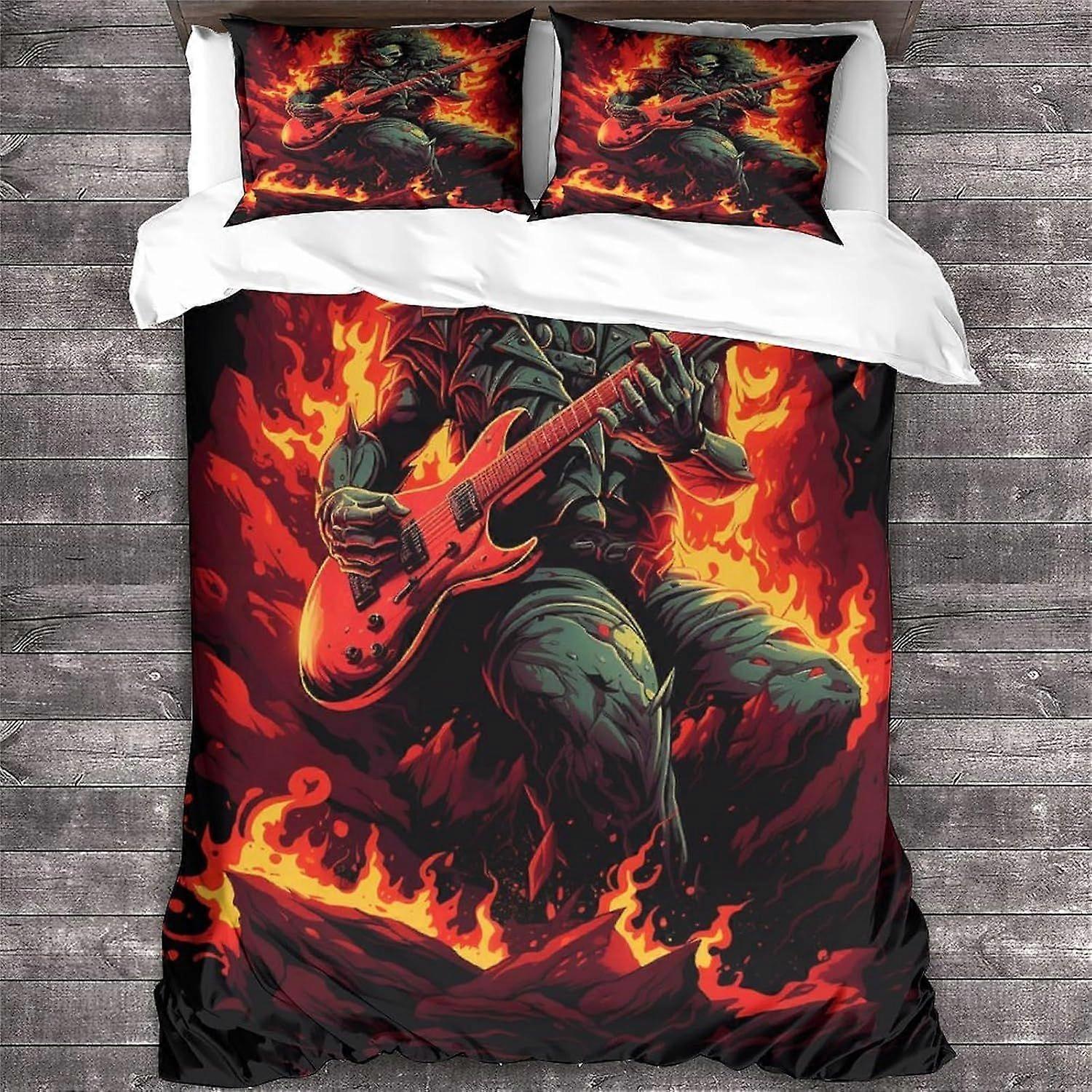 3D Printed Rock 'n' Roll Pattern Bedding Set for Kids Adults,heavy Metal Guitar Duvet Cover with Pillowcases,skull Microfiber Cover with Zipper Closur