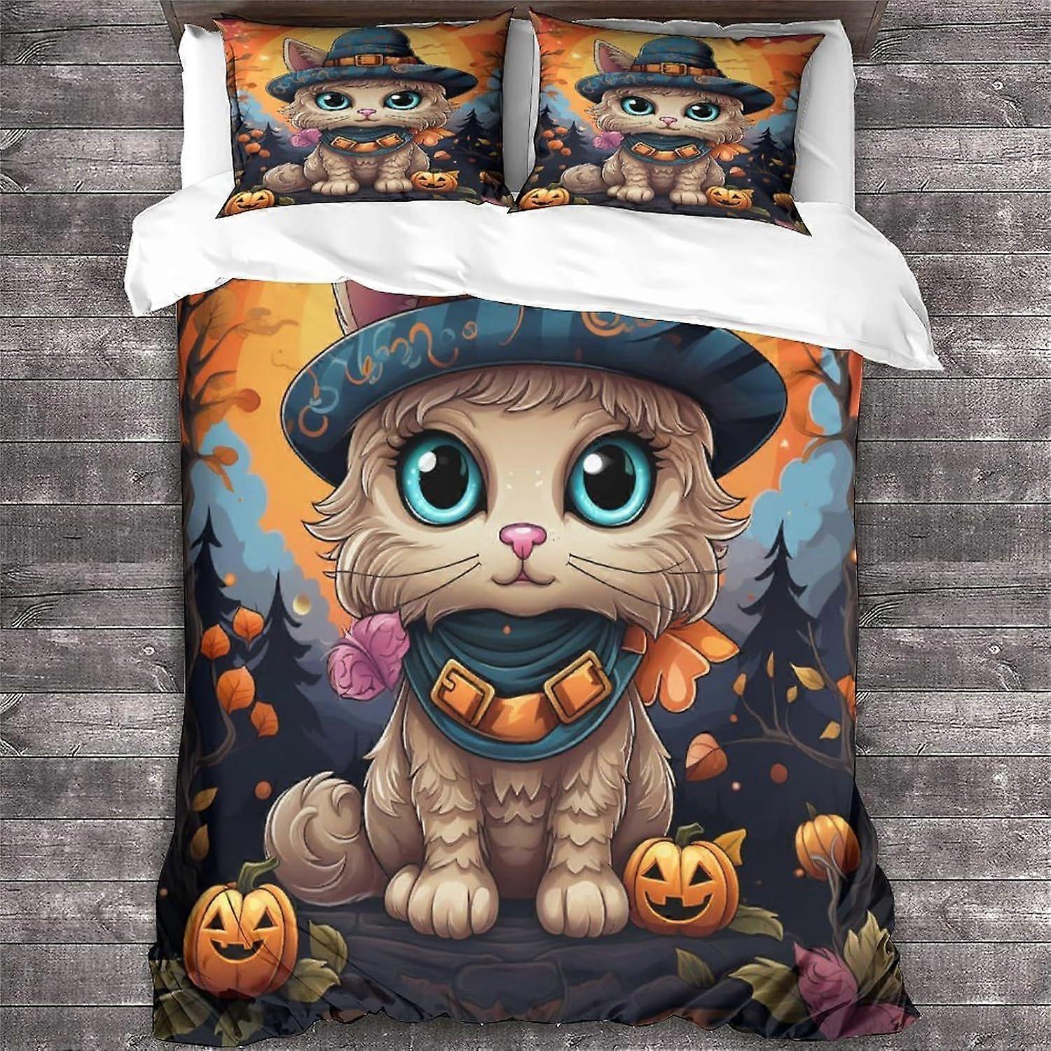 LikeEj Cat 3D Halloween Print Duvet Cover Set Animal Bedding Sets with Hidden Zipper Closure,Microfiber Polyester Comforter Quilt Cover For Teen Boys