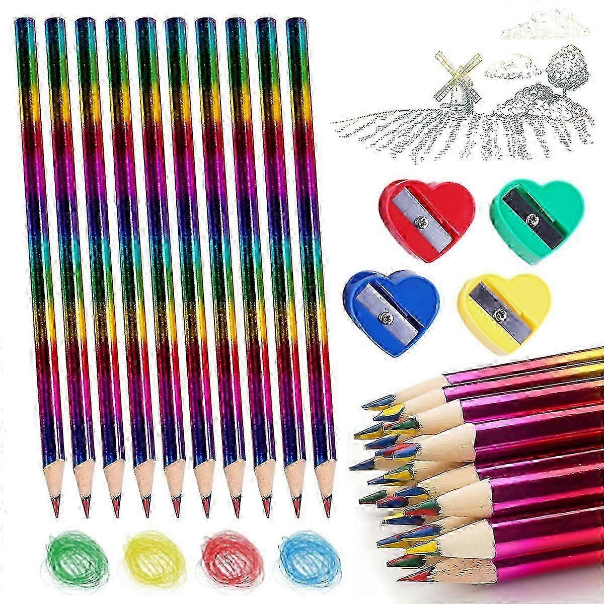 Rainbow Pencils, 42 Pack Kids Rainbow Pencils with 4-Piece Pencil Sharpener, 4-in-1 Rainbow Colored Pencils z