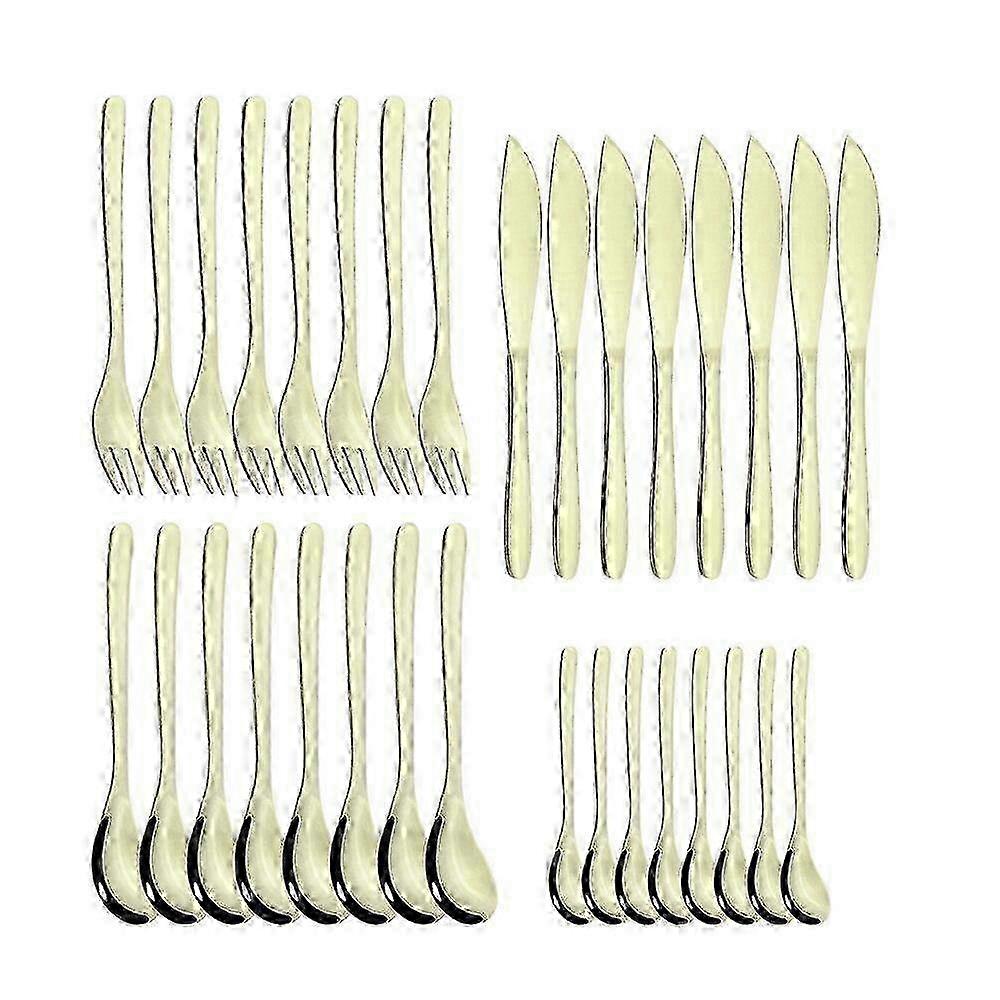 8Set Gold Dinnerware Cutlery Set Dinner Western Knife Fork Coffee Spoon Flatware Silverware Stainless Steel Party Tableware Set z