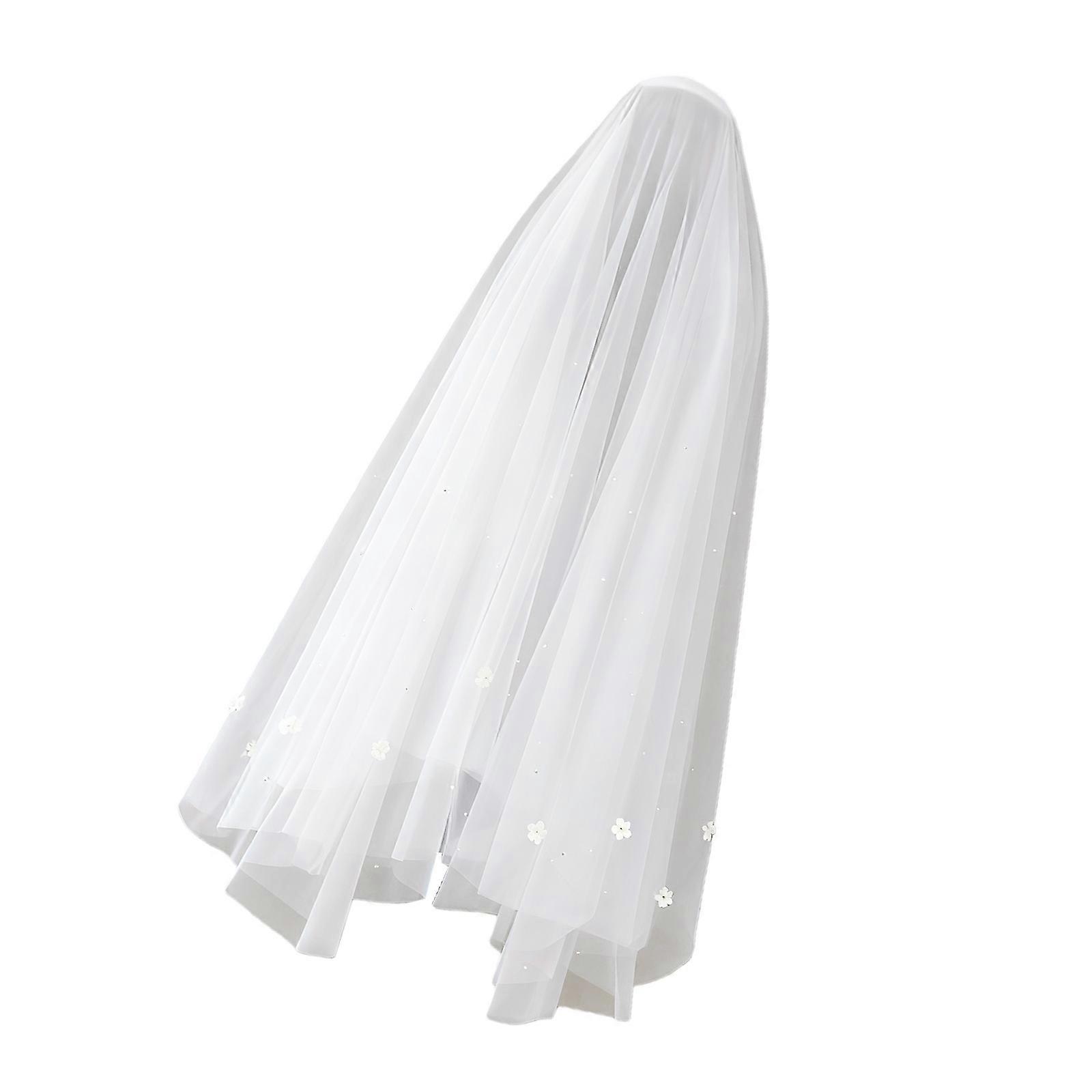 Wedding Head Cover With Flower Pearls Detail Soft Sheer Bridal Headpiece Easy To Secure Comfortable Hair Piece White