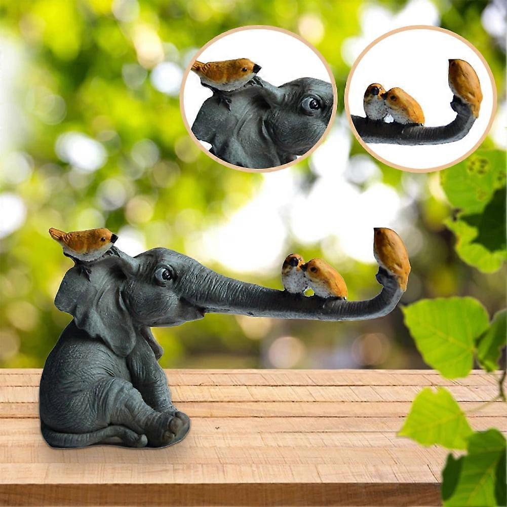 Cheer.US Elephant Resin Figurine, compatible with home decor, features elephant with birds, perfect for shelf, office, garden, or collection as lucky