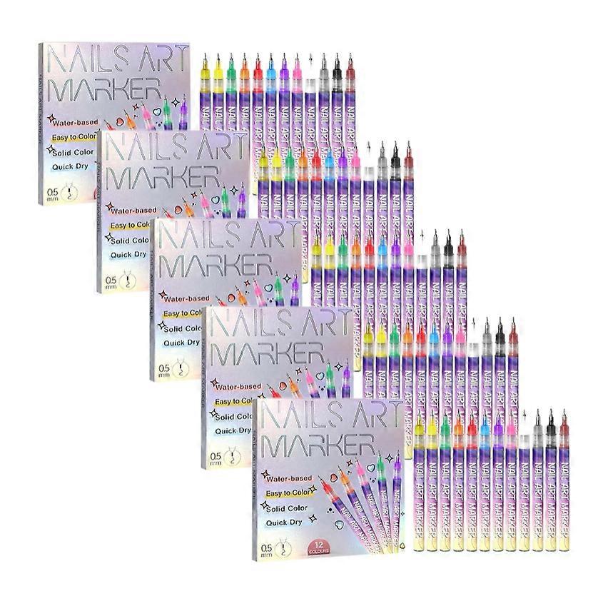 1-5x Nail Art Pens Set, Nail Art Marker, Nail Doodle Pens, 0.5 MM Nail Polish Pens Set, Waterproof and Quick-drying Nail for DIY Nails Art Design