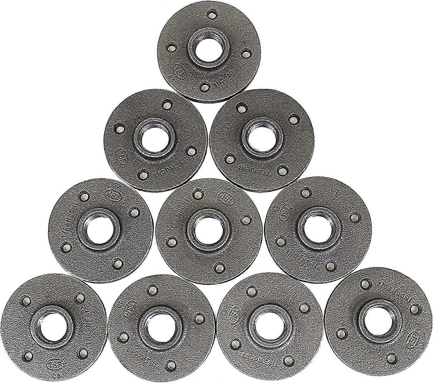 Industrial 1" Black Iron Pipe Flanges - 10 Pack Malleable Threaded Fittings for DIY Furniture, Vintage Steam Punk Lamp, Floating Shelves, compatible