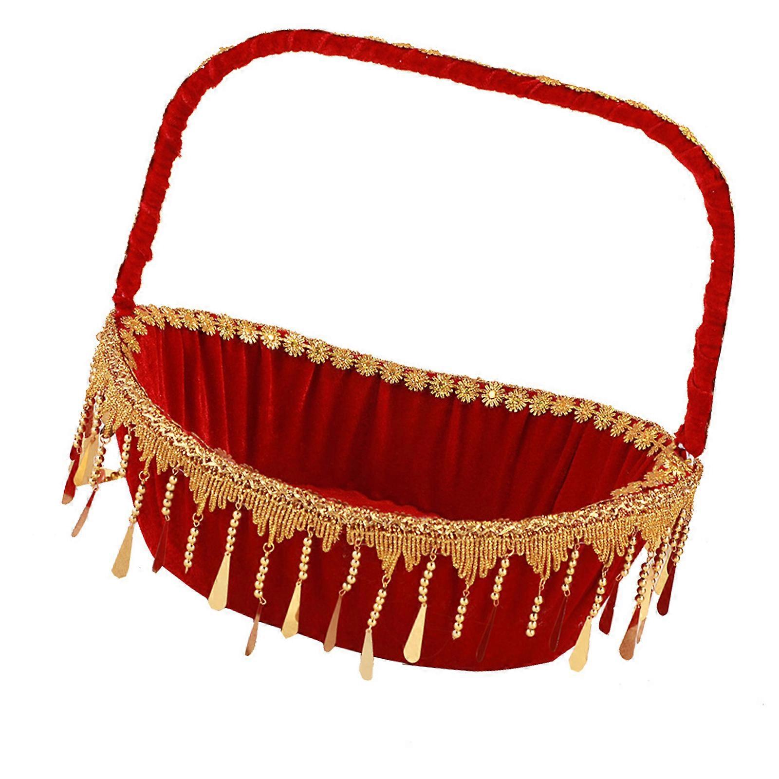 Delicate Gold Trimmed Flower Girls Basket Wedding Bouquet Holder For Indoor Outdoor Formal Occasion Ceremonies Accessory Red