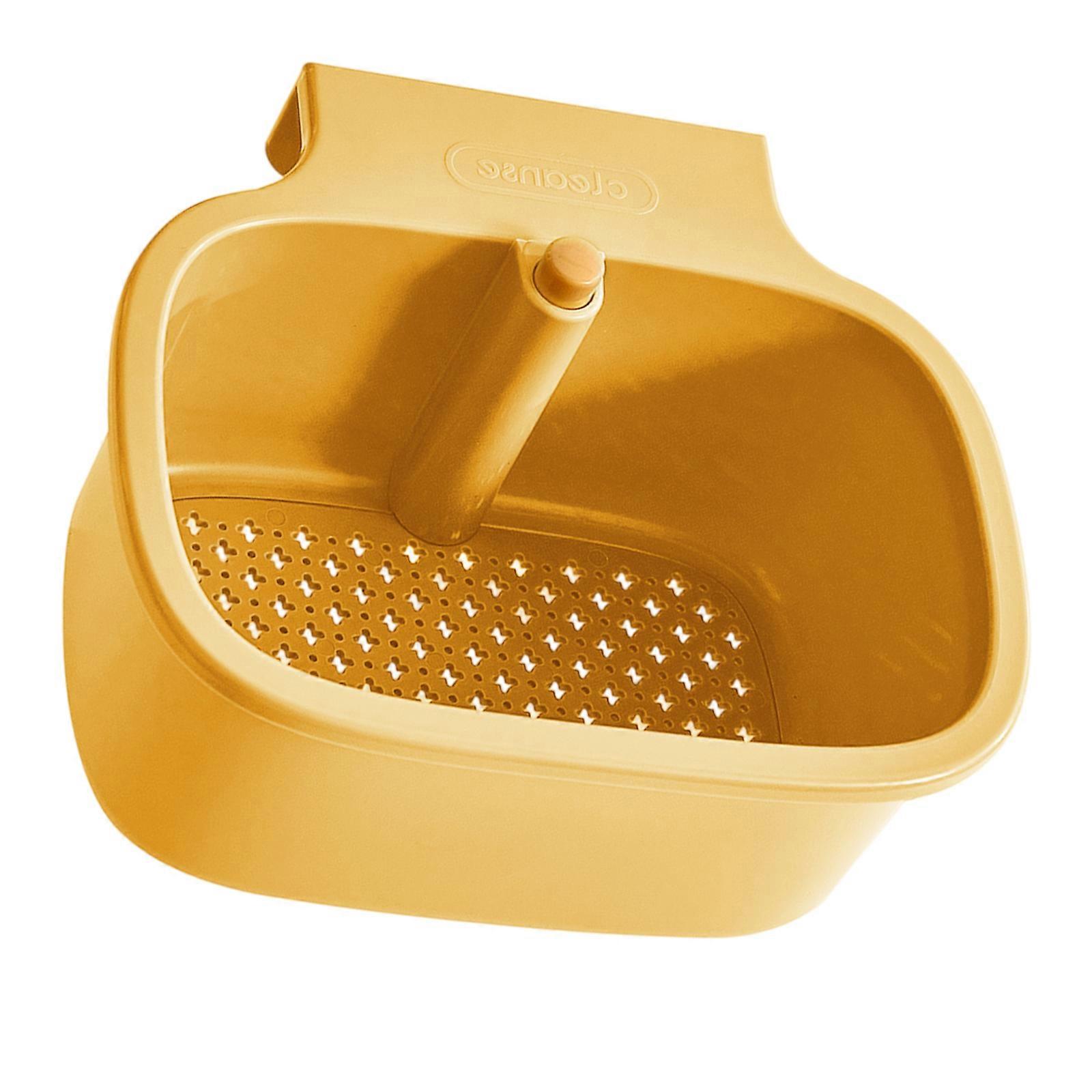 Easy Press Wall Mount Dish Strainer ABS Base Stainless Steel Fast Draining Basket Kitchen Organiser Yellow