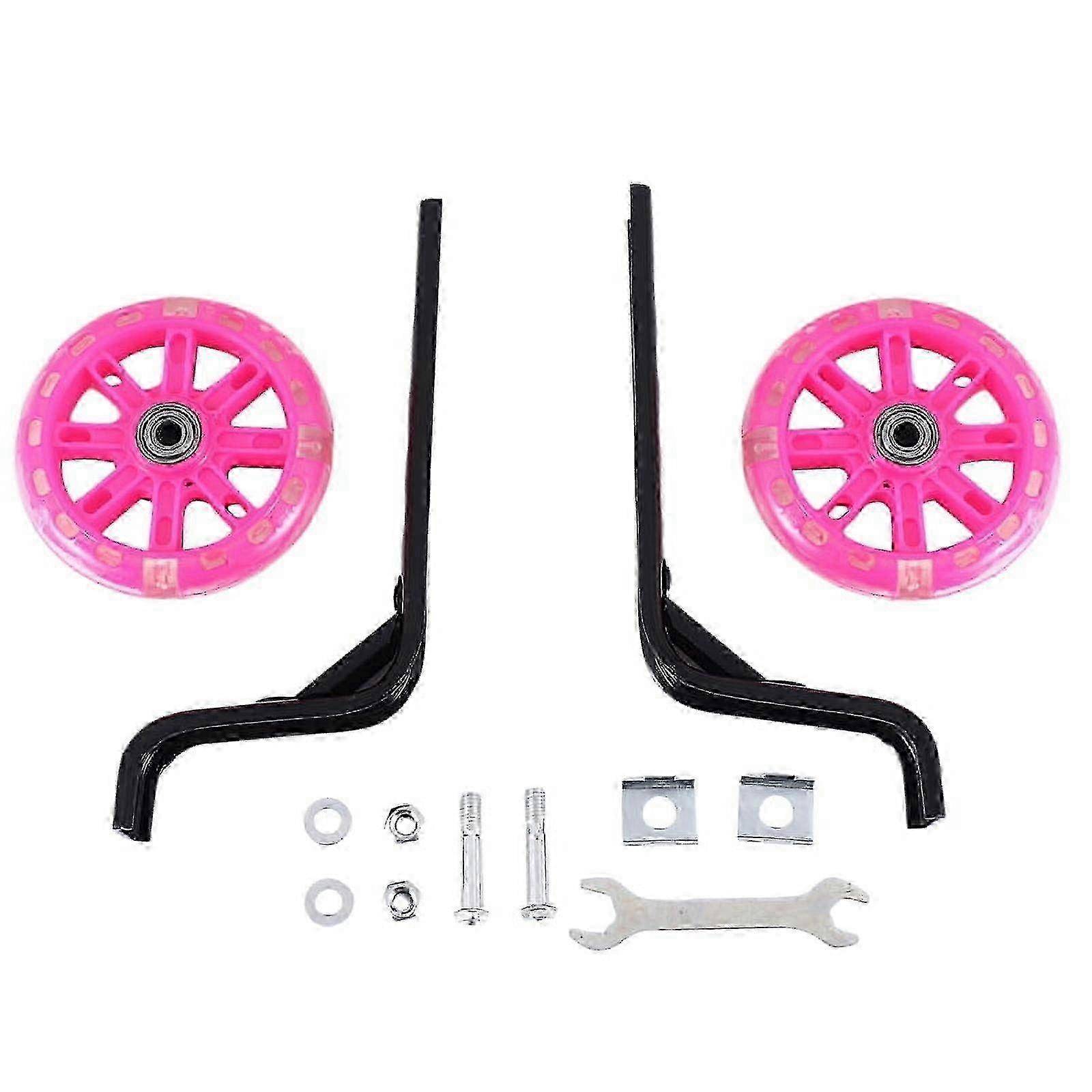 [Universal Diameter and Available Size]Still bothered by the fact that some bike training wheels can only fit one or two sizes of bicycles That's okay. Our training wheels with bracket attached with 5 holes can excellently meet your needs to mount it on bicycles with sizes: 12, 14, 16, 18, 20 inch. Its round figure and lovely appearance perfectly match each other, like a blue lollipop, bringing your kids a chromatic childhood. (Note: Unavailable for variable-speed bicycle) [Thickened Wheel with Quality PU Material]We have been looking for silent and hard-wearing bike wheels, especially those also can play a role in shock absorption. This training wheel made of quality PU material just fits that bill. Meanwhile, thicker wheel with 2.5cm thickness (0.5cm thicker than ordinary one) can reduce bumps and make for an easy ride with less effort and more comfort [Double Bearing and Larger Washer]After optimization, the double high carbon steel bearing of our training wheel has been tested to be silent and smooth, with longer wheel life. In addition, we have specially enlarged the washer so that it can cover the whole bearing nicely. So even after your kid has ridden for a while, you don't have to worry about the sudden drop of the bearing, which may cause your child's sudden falling to ground. Ride safely and grow up freely [Thicker Bracket, Stronger and More ]Have you ever encountered a deformed or even broken bracket of a training wheel Please don't worry. With that in mind, we designed a training wheel with bracket at 3mm thickness which is 20 percent thicker than regular one, exerting a stronger support capacity. Thus, it's not easily deformed or broken. Your kid will be with confidence while luxuriating in learning to ride a bike [Easy Installation] equipped with wrenches, the installation can be easily completed. The locking bra is of an assistant for securing the bracket and bicycle. Couldn't be more simple! Meanwhile, we recommend the wheel should be about 5mm away from the ground when the bike is standing upright, which is conducive to your kid's mastering the sense of balance in riding Colour: Pink Material: plastic Package Contents: 2 x wheels 1 x wrench 2 x screws and nuts 2 x cushions Only the above package content, other products are not included. Note: Light and different displays may cause the color of the item in the picture a little different from the real thing. The measurement allowed error is 1-3cm. [Thicker Bracket, Stronger and More ]Have you ever encountered a deformed or even broken bracket of a training wheel Please don't worry. With that in mind, we designed a training wheel with bracket at 3mm thickness which is 20 percent thicker than regular one, exerting a stronger support capacity. Thus, it's not easily deformed or broken. Your kid will be with confidence while luxuriating in learning to ride a bike [Double Bearing and Larger Washer]After optimization, the double high carbon steel bearing of our training wheel has been tested to be silent and smooth, with longer wheel life. In addition, we have specially enlarged the washer so that it can cover the whole bearing nicely. So even after your kid has ridden for a while, you don't have to worry about the sudden drop of the bearing, which may cause your child's sudden falling to ground. Ride safely and grow up freely [Universal Diameter and Available Size]Still bothered by the fact that some bike training wheels can only fit one or two sizes of bicycles That's okay. Our training wheels with bracket attached with 5 various holes can excellently meet your needs to mount it on bicycles with sizes: 12, 14, 16, 18, 20 inch. Its round figure and lovely appearance perfectly match each other, like a blue lollipop, bringing your kids a chromatic childhood. (Note: Unavailable for variable-speed bicycle) [Thickened Wheel with Quality PU Material]We have been looking for silent and hard-wearing bike wheels, especially those also can play a role in shock absorption. This training wheel made of quality PU material just fits that bill. Meanwhile, thicker wheel with 2.5cm thickness (0.5cm thicker than ordinary one) can reduce bumps and make for an easy ride with less effort and more comfort Note: Due to the light and screen setting difference, the item's color may be slightly different from the pictures. Please allow slight dimension difference due to different manual measurement.