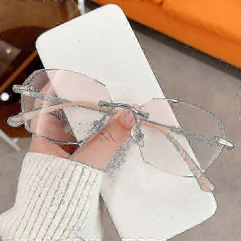 Retro Rimless Reading Glasses Blue Light Blocking Diamond Cut Gradient Far Sight Eyeglasses Eyewear For Women z