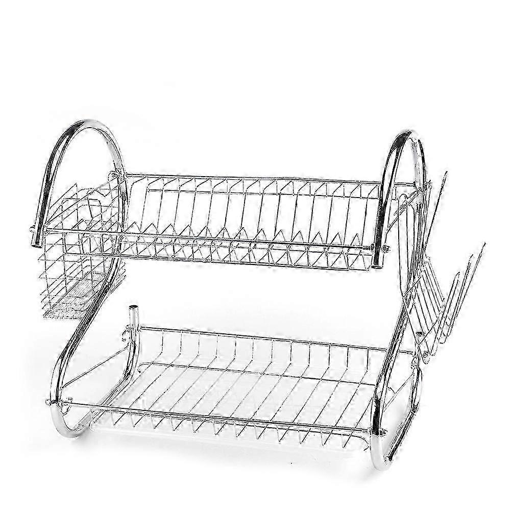 2 Tier Stainless Steel Kitchen Dish Cup Drying Rack Holder Sink Drainer Dryer z