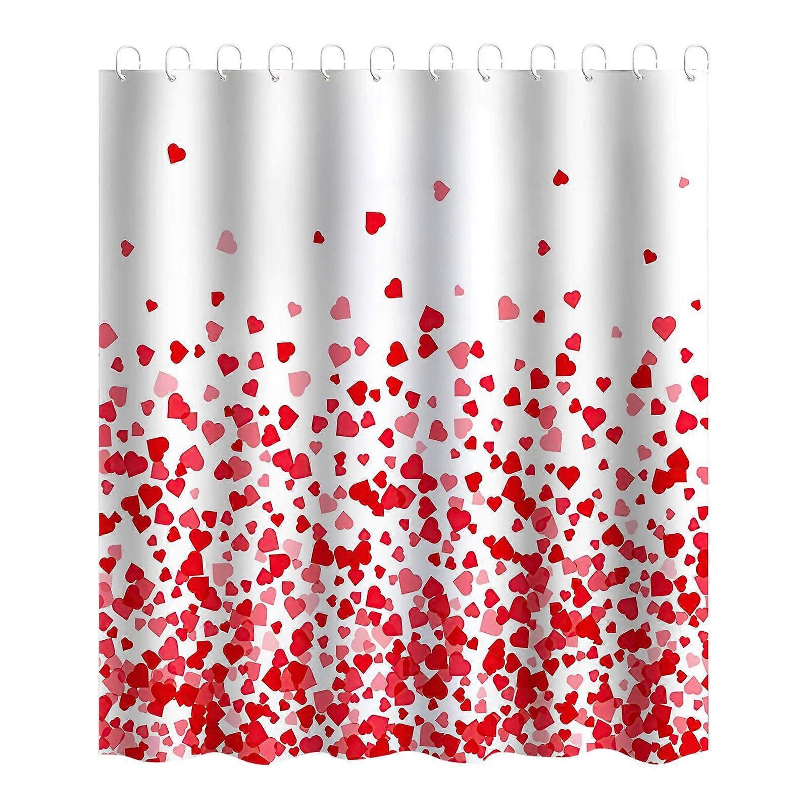 Red Sweetheart Shower Curtain with Hooks, Polyester Fabric for Bathroom Decor, Valentine's Day Theme, Compatible with RDC