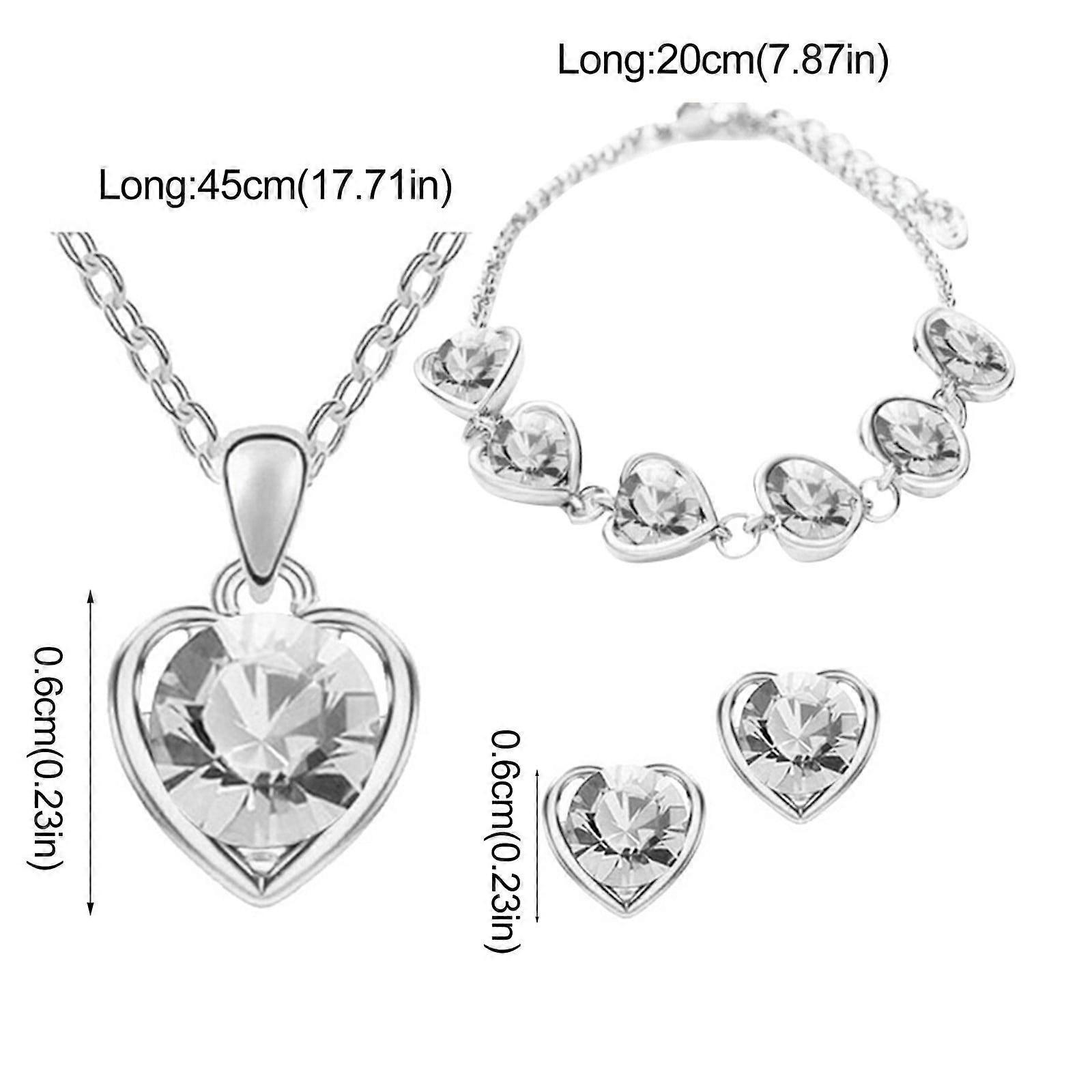 Yuehao Jewelry Sets, Gifts for Women, Women Crystal Jewelry Simple Heart Necklace Earrings Bracelet Three-Piece Set
