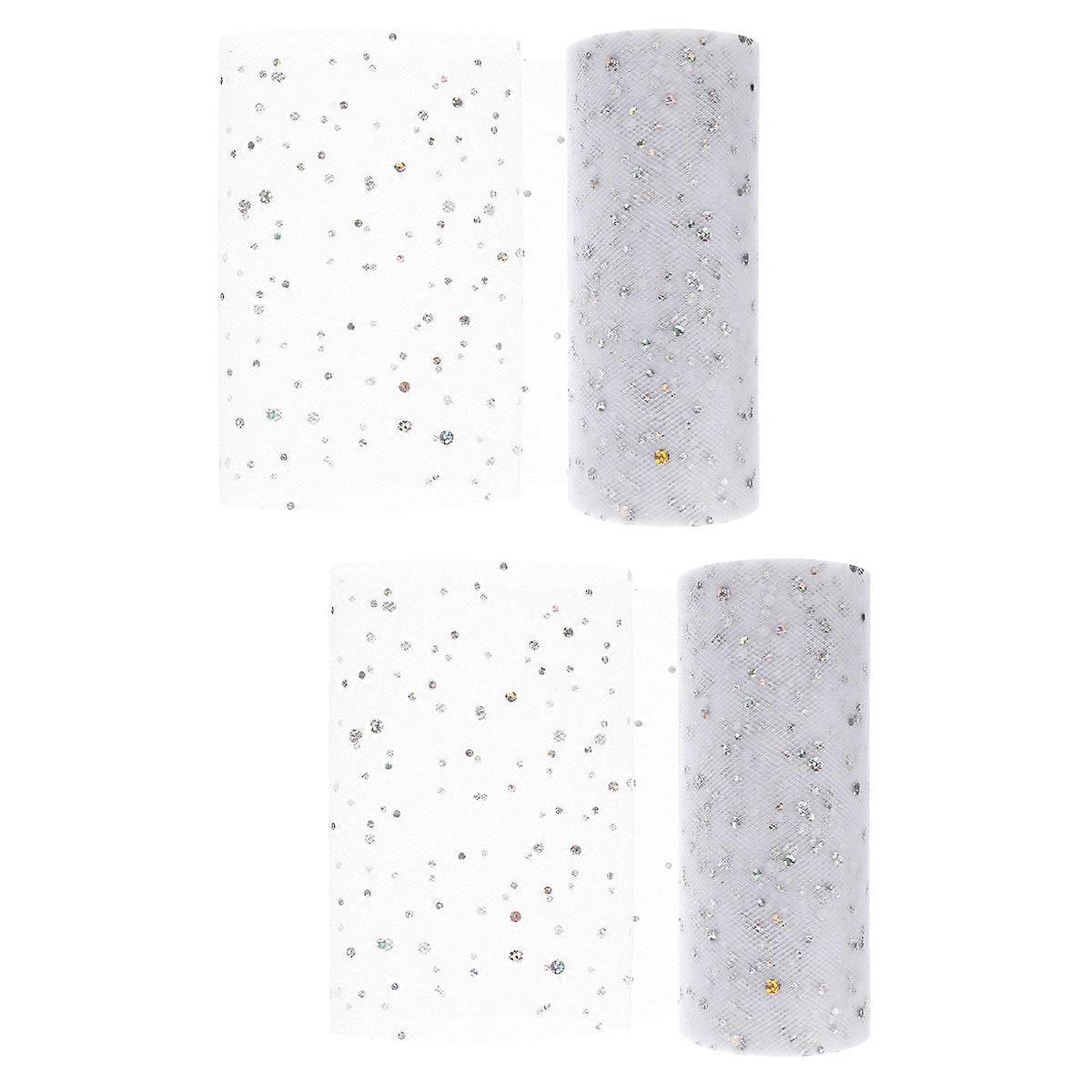 2 Rolls of Glitter Tulle Fabric Roll Tutu Skirt DIY Tulle Fabric Gift Wrapping Ribbon