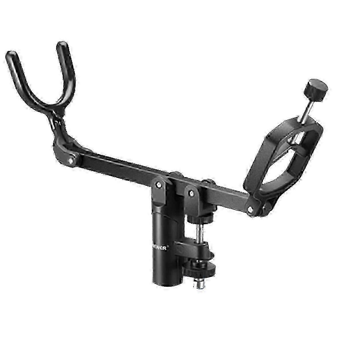 [for Various Boom Diameters] The adjustable boom clamp can fix microphone booms 0.8 inch-1.8 inch(20-45mm) in diameter, up to 17.6lb (8kg) in weight [Vinyl Coating and Rubber Pads] Vinyl coated yoke and nonslip rubber pads on the clamp protect against scratches and add stability [ and Build] Robust and black anodized aluminum alloy is perfect for outdoor filmmaking, interviewing, and sound recording. Foldable for easy storage and transportation Features: Directly secure on any light stand with a 5 or 8 inch stud for handsfree boom operation. 15 downward and 30 upward tilt for capturing clear sound at optimal angles. Vinyl coated yoke and nonslip rubber pads protect against scratches and add stability. Solid yet aluminum alloy suits outdoor filmmaking, interviewing, and sound recording. Foldable for ease of storage and transportation. Specifications Model: CM-2 Tilt Angles: -15 or and30 Colour: Black Material: Aluminum Alloy Package Contents: 1 x Mic Boom Pole Support Holder Only the above package content, other products are not included. Note: Light reflection and different displays may cause the color of the item in the picture a little different from the real thing. The measurement allowed error is 1-3cm. Note: Due to the light and screen setting difference, the item's color may be slightly different from the pictures. Please allow slight dimension difference due to different manual measurement.