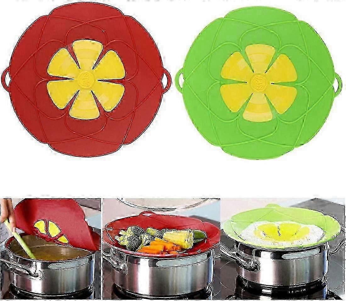 2pcs Spill Stopper Lid Cover,boil Over Safeguard, 10.2"green+red z