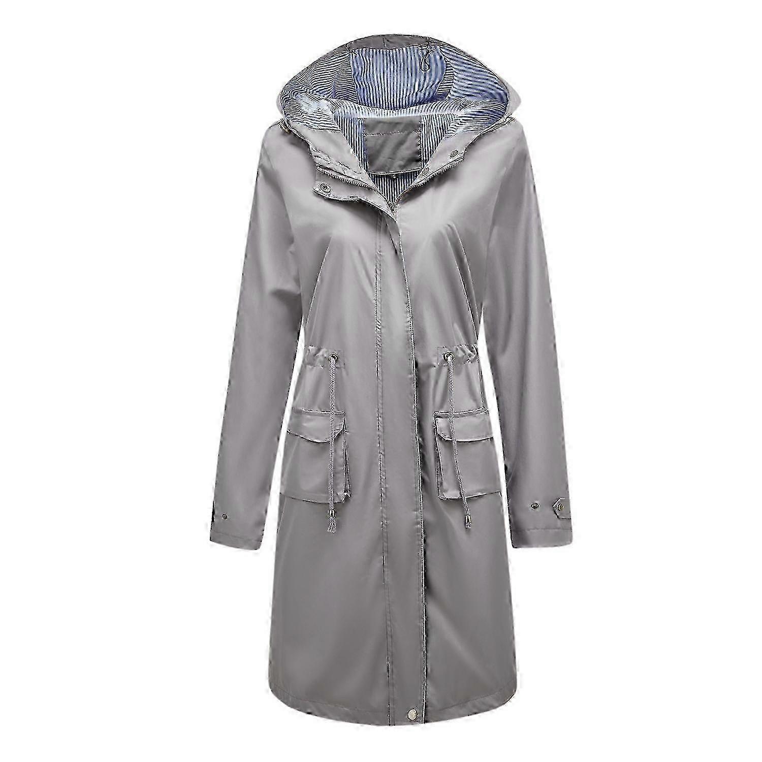 Women's Windcheaters Hooded Long Loose Coat with Side Pocket Outdoor Light Rain Windbreaker Hiking Jacket z