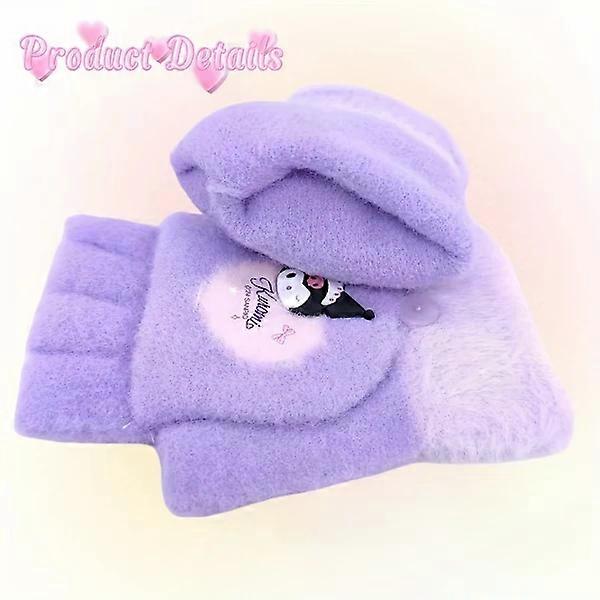1 Pair Sanrio Hello Kitty Kuromi Melody Winter Knitted Half Finger Mittens Outdoor Cold Safety And Warmth Cute Mittens Suitable yc