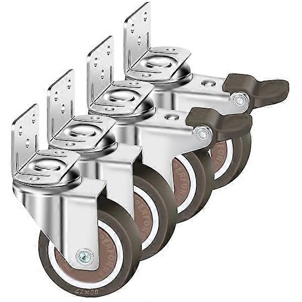 Set of 4 swivel casters 50 mm, 100 kg furniture casters, L-type furniture casters with brake 360 degree rotation, for indoor and outdoor use (2 caste