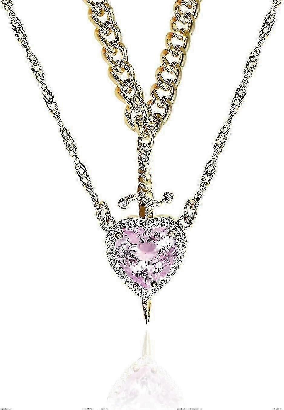 Trendy heart and sword couples necklace gold stainless steel chain