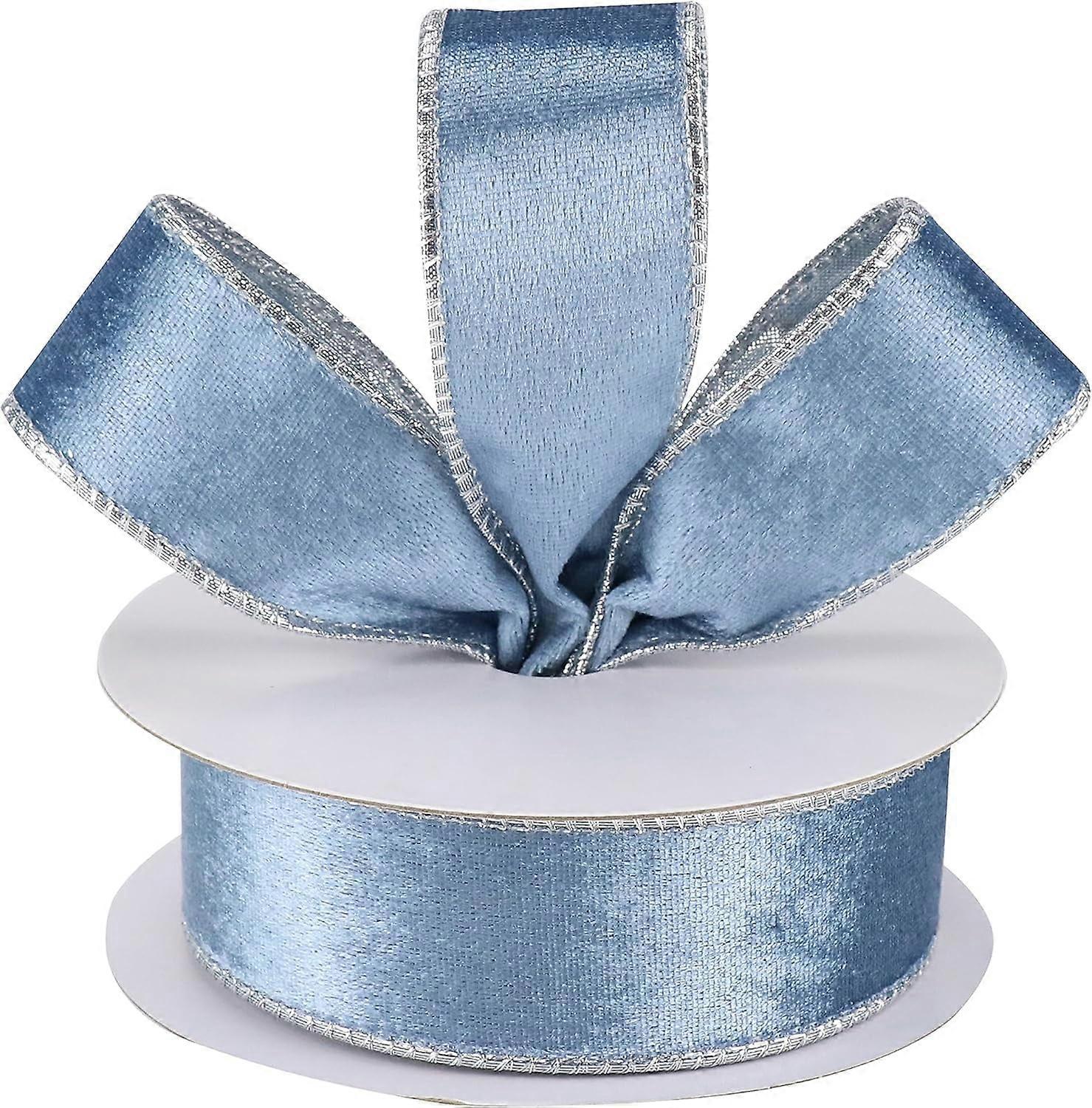 NANAHuang Dusty Blue Silver Metallic Wired Ribbon 2.5" x 10 Yards, compatible with wreaths, tree toppers, crafts, gift wrapping, home decor