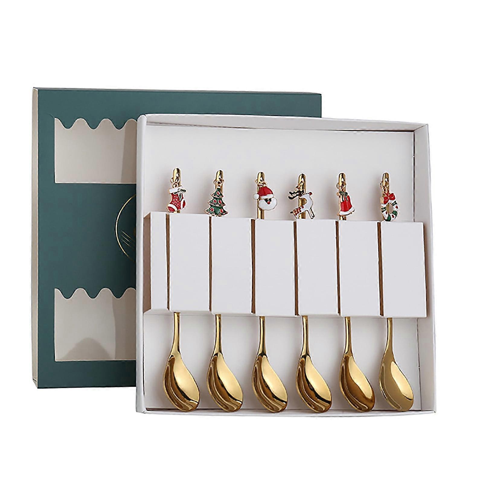 EQWLJWE 6pcs Christmas Spoon Set, Compatible with Holiday Themed Drinks, Stainless Steel Tea, Coffee, Dessert Spoons for Mixing