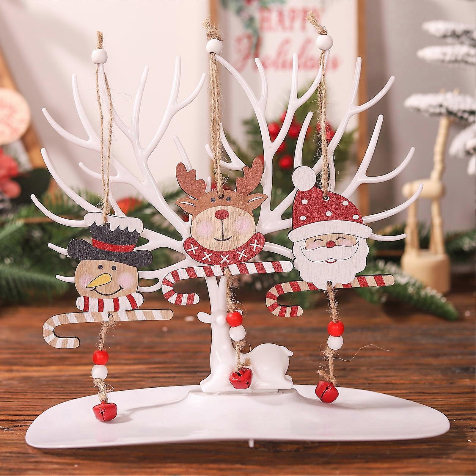 SUSUchens Christmas Wooden Pendants Cartoon Santa Claus Candy Cane Hanging Bell Create Atmosphere Hanging Ornaments Elk