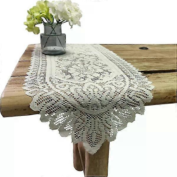 2-pack crochet lace rectangular table runner dresser scarf tablecloths (beige without tassels) Beige without tassels [DB]YC