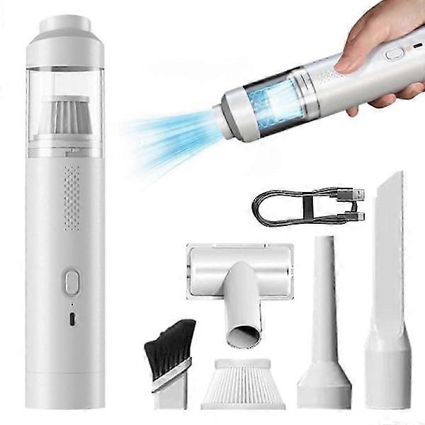Features1. Cordless vacuum cleaner, dualuse for car and home, vacuuming, blowing, emptying all in one.2. 200W highpower, highspeed brushless motor, provides strong suction power, low loss and long service life.3. Twospeed adjustment, long press to start the first gear, low speed, short press to select the second gear, high speed, short press again to turn off.4. Widely used, can be used in the car, home and office, vacuuming wirelessly. Equipped with an air nozzle, multifunctional use to meet different needs.SpecificationProduct Name Brushless Vacuum CleanerProduct model EG121Product size 5.525cmProduct material ABSBattery capacity brushless 2000mAh2 cellsSpeed Brushless 80000Suction power when vacuuming brushless model up to 11000Product features lightweight and portable, strong suction power, brushless motorPower 200WSuction power 19000PAMotor movement permanent magnet coilGear Two speed adjustmentsDust container capacity 0.4LCharging interface TypeCCharging time 3.5H4HRated power 5V2AColor Black, WhiteWeight 510gThe package containsVacuum cleaner body including filter elementFloor brushLong suction nozzle brush head removableBlow nozzleTypeC charging cableStorage bag 1Metal filter 1