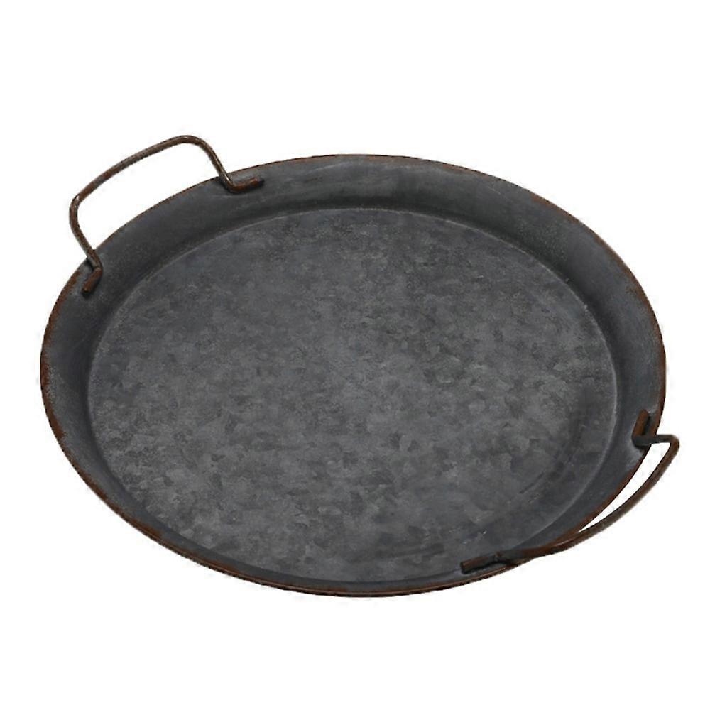 Industrial Style Metal Iron Serving Tray with Handle, Rustic Galvanized Storage Tray Round Coffee Table Home Decor Centerpiece Tray