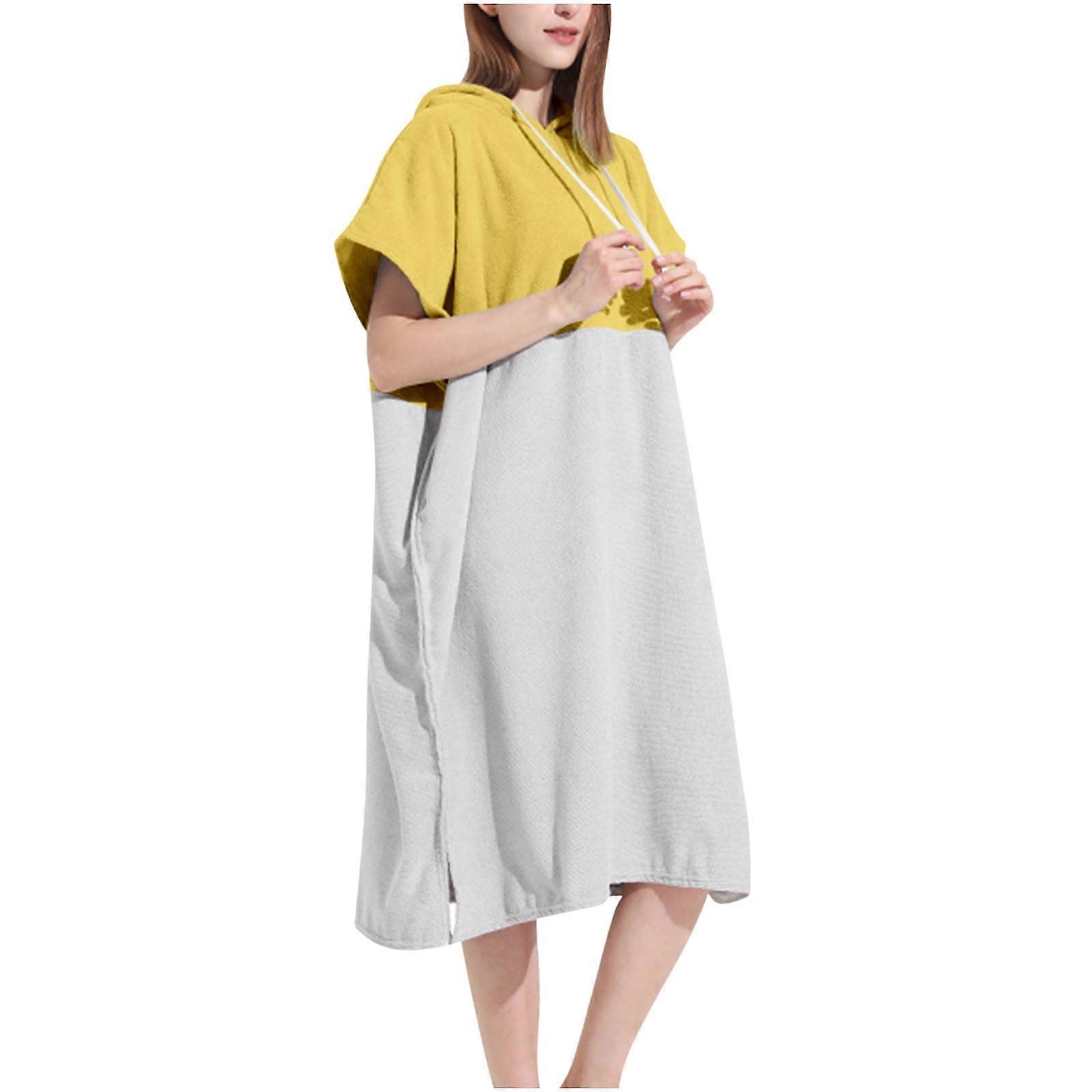 EQWLJWE Surfing Changing Robe with Hood,Quick Dry Wetsuit Changing Bath Robe Color Block Beach Towel with Pocket for Mens Womens Gift Yellow