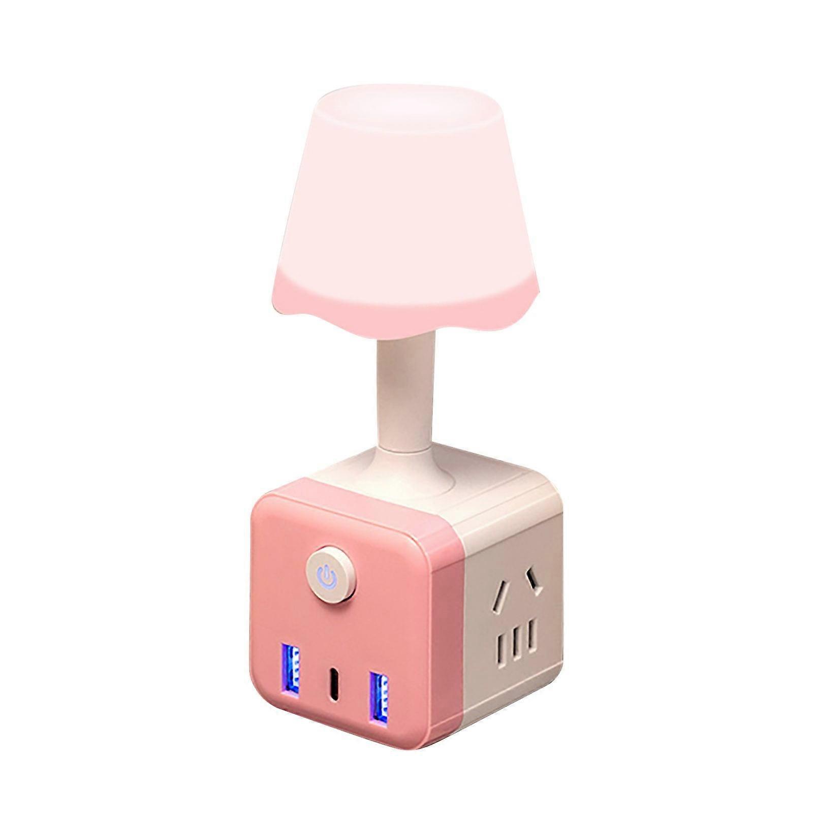 Cute Night Light with USB, Compatible with Home Socket, Soft & Non-Dazzling Multi-Function Bedside Lamp