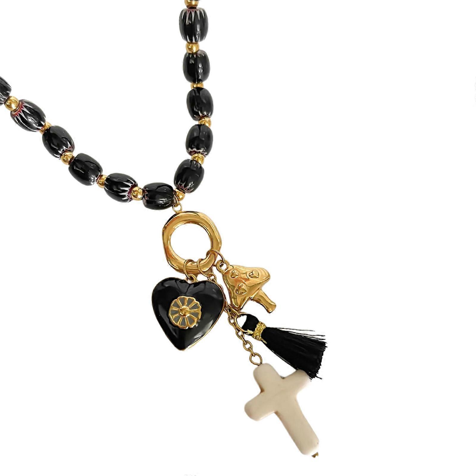 Stainless Steel Crosses Pendant Necklace Black Bead Accent Adjustable Chain Retro Jewelry for Women Multicolor