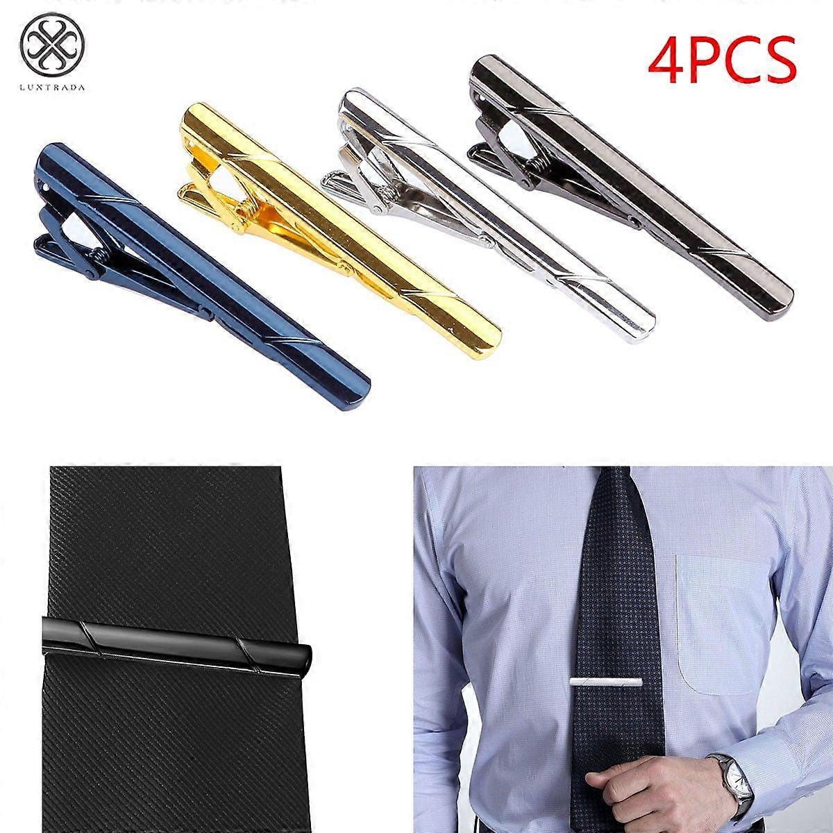 Luxtrada 4pcs Mens Stainless Steel Tie Clip Necktie Bar Clasp Clamp Pin Gold Black Silver Blue
