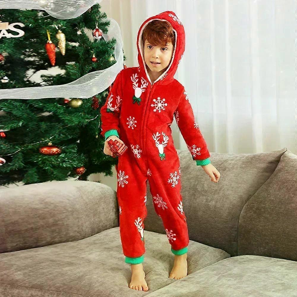 2025 Christmas Children's Onesie Flannel Warm Thick Hooded Jumpsuit Baby Boys Girls Zipper Romper Kids Sleepwear Xmas Look Pjs