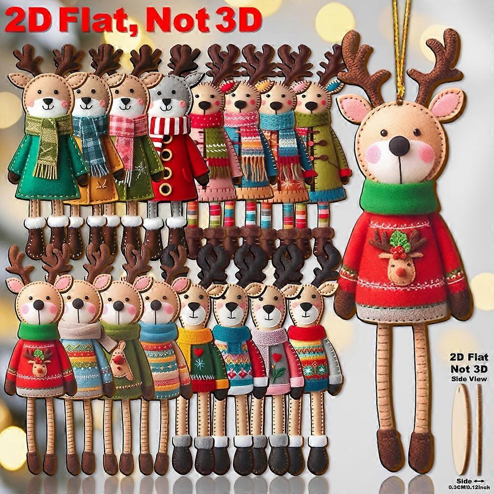 16pcs 2D Colorful Christmas Reindeer Wooden Ornament 2025 Christmas Cartoon Hanging Ornaments for Home 2026 New Year Gift