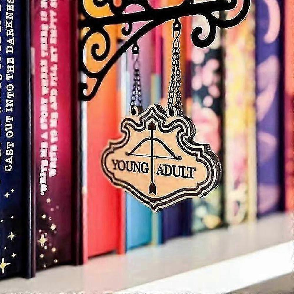 Handmade Wooden Book Nook Tavern Signs with Hanging Brackets for Shelf Organization