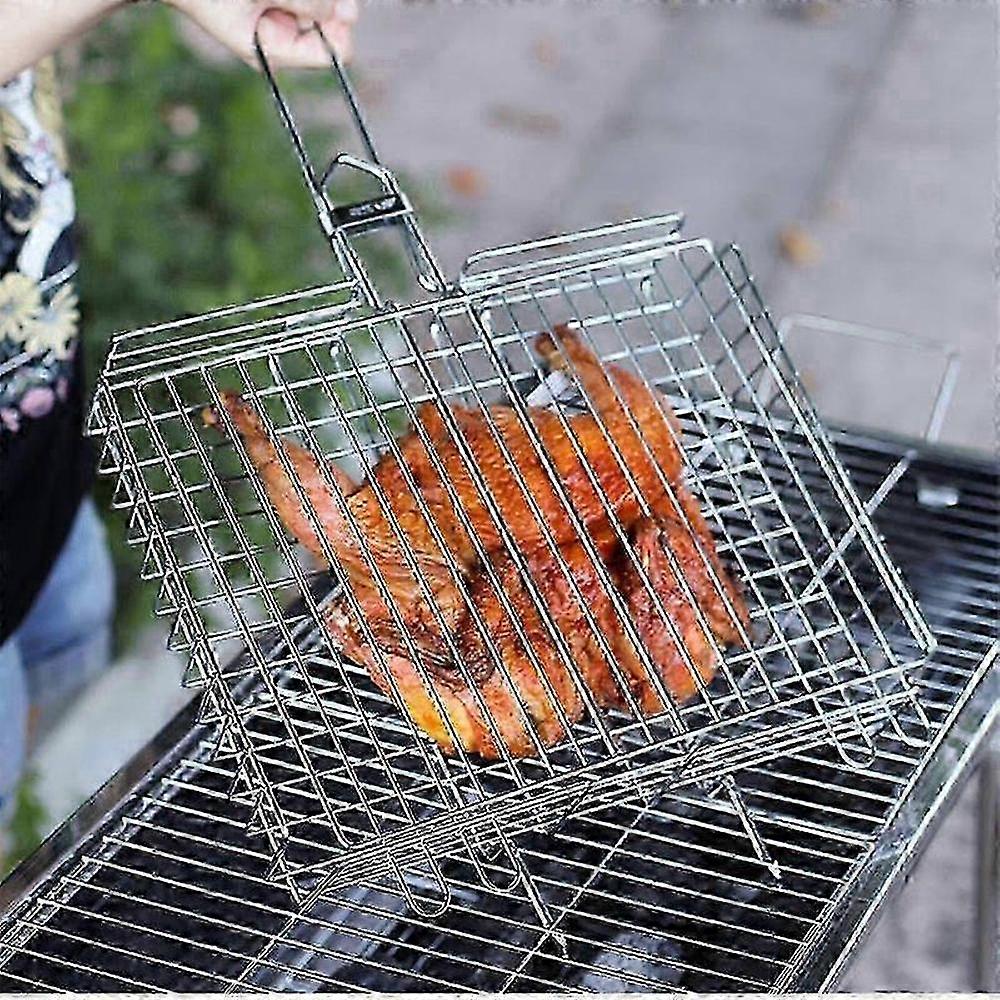 Stainless Steel Portable BBQ Grill Basket with Removable Handle for Fish, Steak, and Vegetables