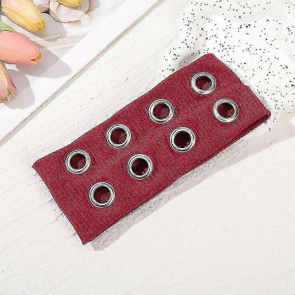 Punk Style Stretchy Headband with Hollow Eyelets and Metal Rivet Accents
