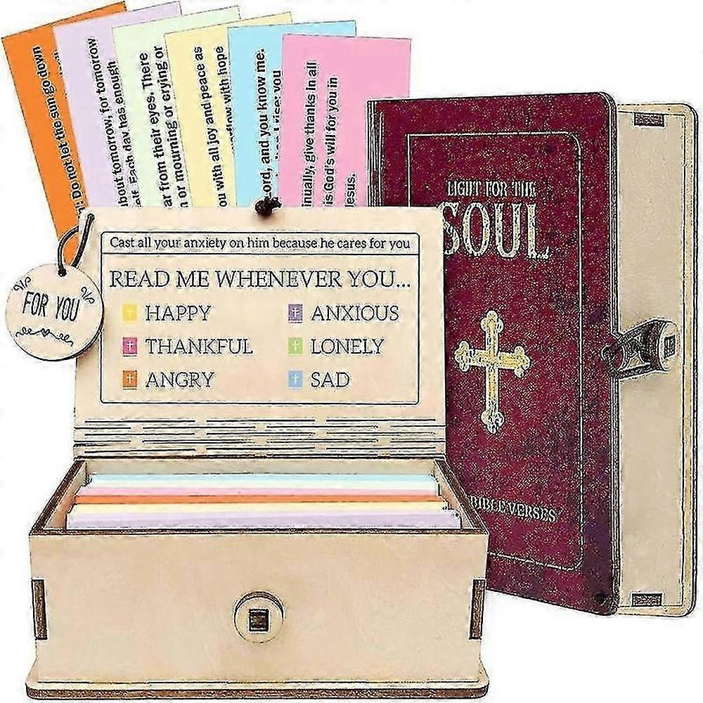 Wooden Scripture Memory Card Box for Bible Verses - Portable Prayer Organizer for Family