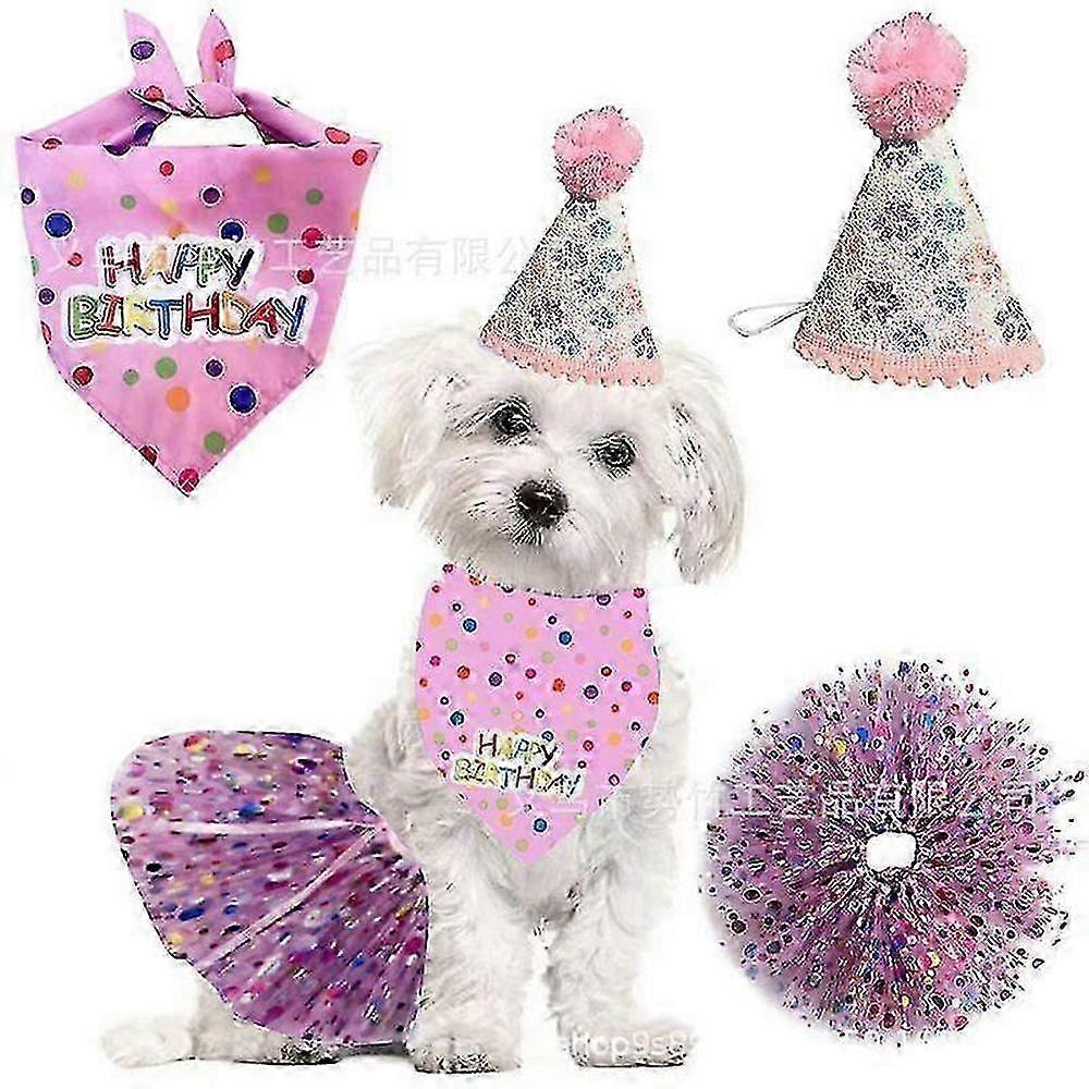 Purple Dog Birthday Outfit Set with Bandana, Hat, and Adjustable Tutu Skirt